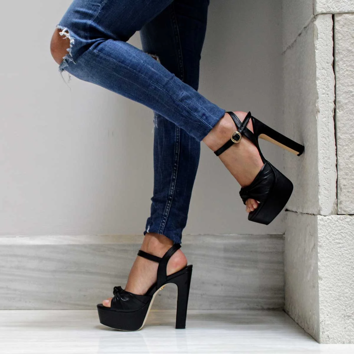 ALEXA 135 – Negro Regina Romero Zapato Sandalia Plataforma Tacon Alto Para Dama En Piel