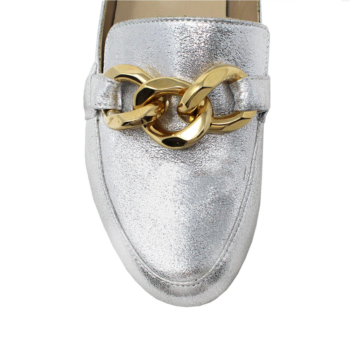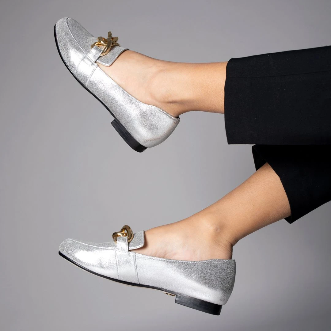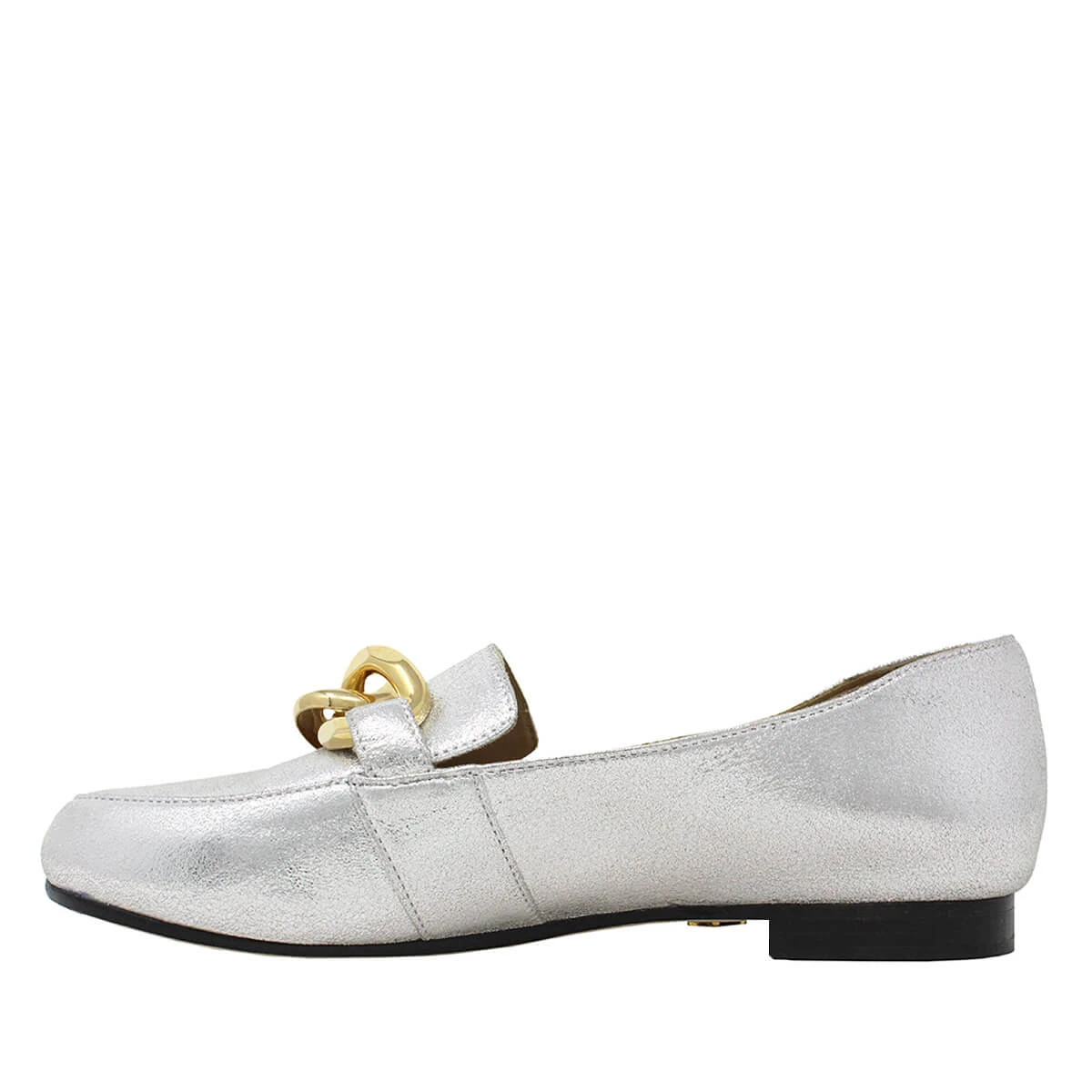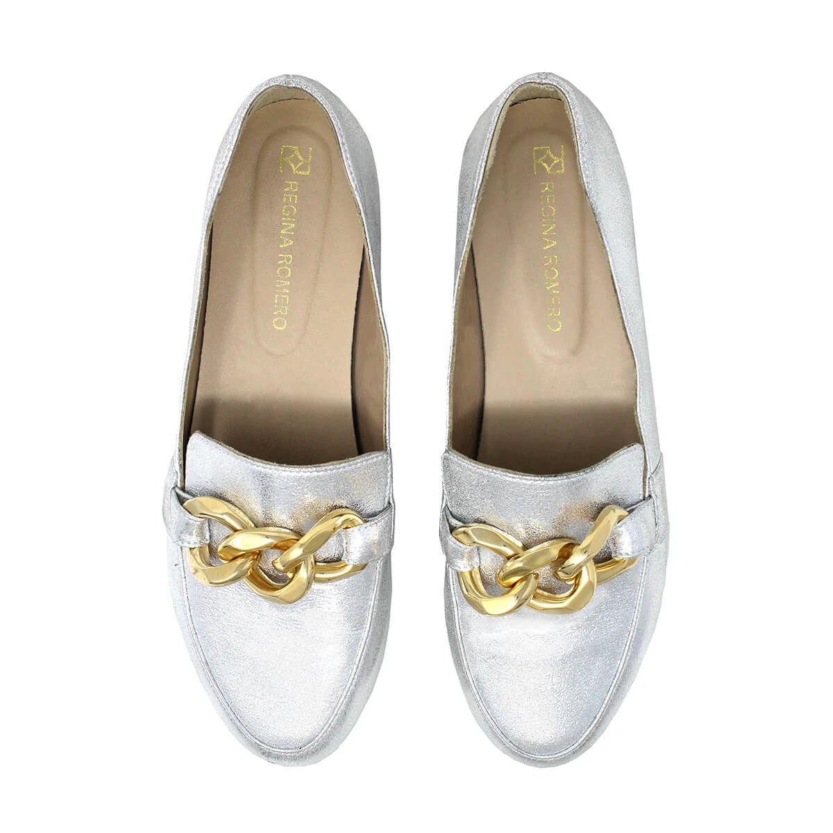 ALINE – Plata Regina Romero Zapato Mocasin De Piso Para Dama En Piel