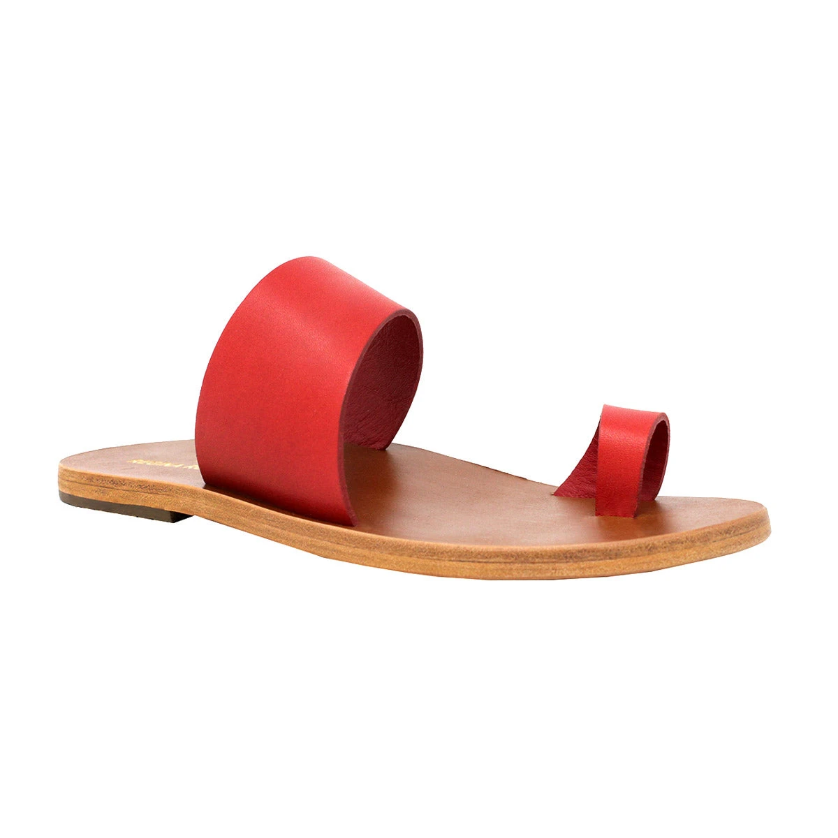 AMAYA – Rojo Regina Romero Resort Zapato Sandalia De Piso Para Dama En Piel
