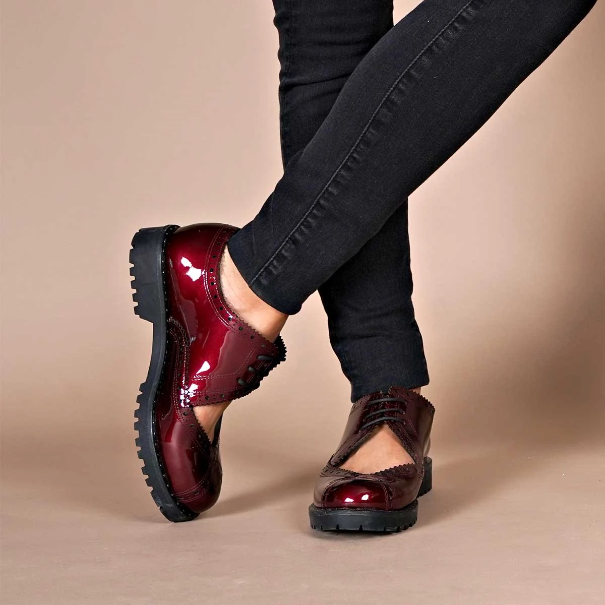 CHAPEL 30 – Charol Vino Regina Romero Zapato Bostoniano Urbano Sport Para Dama En Piel