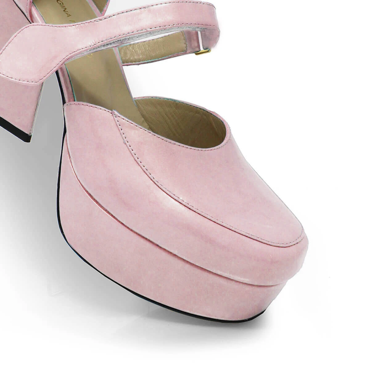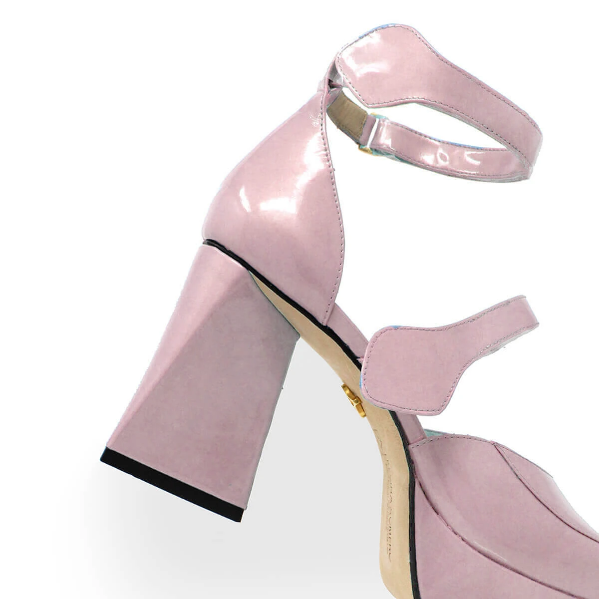 JETSON 95 – Charol Rosa Claro Regina Romero Zapato Sandalia Plataforma Tacon Alto Para Dama En Piel