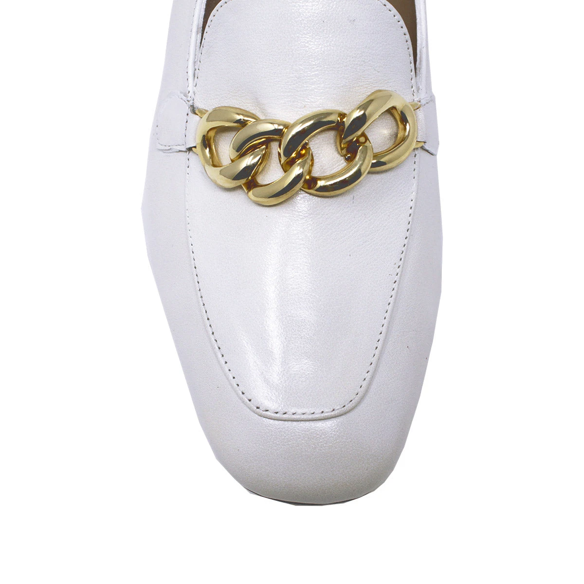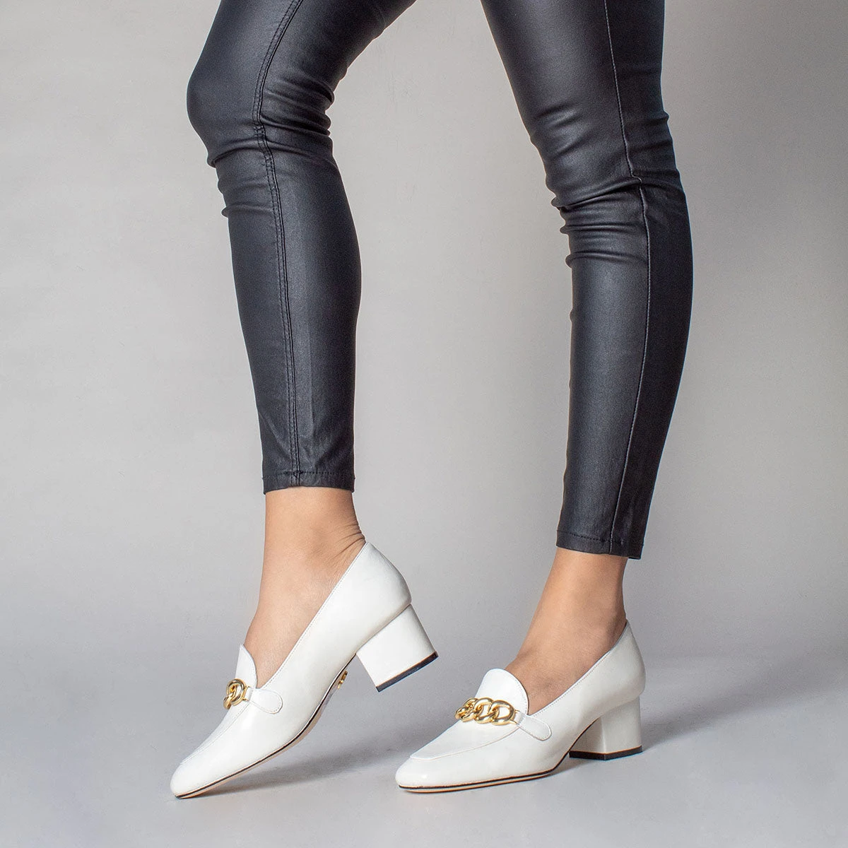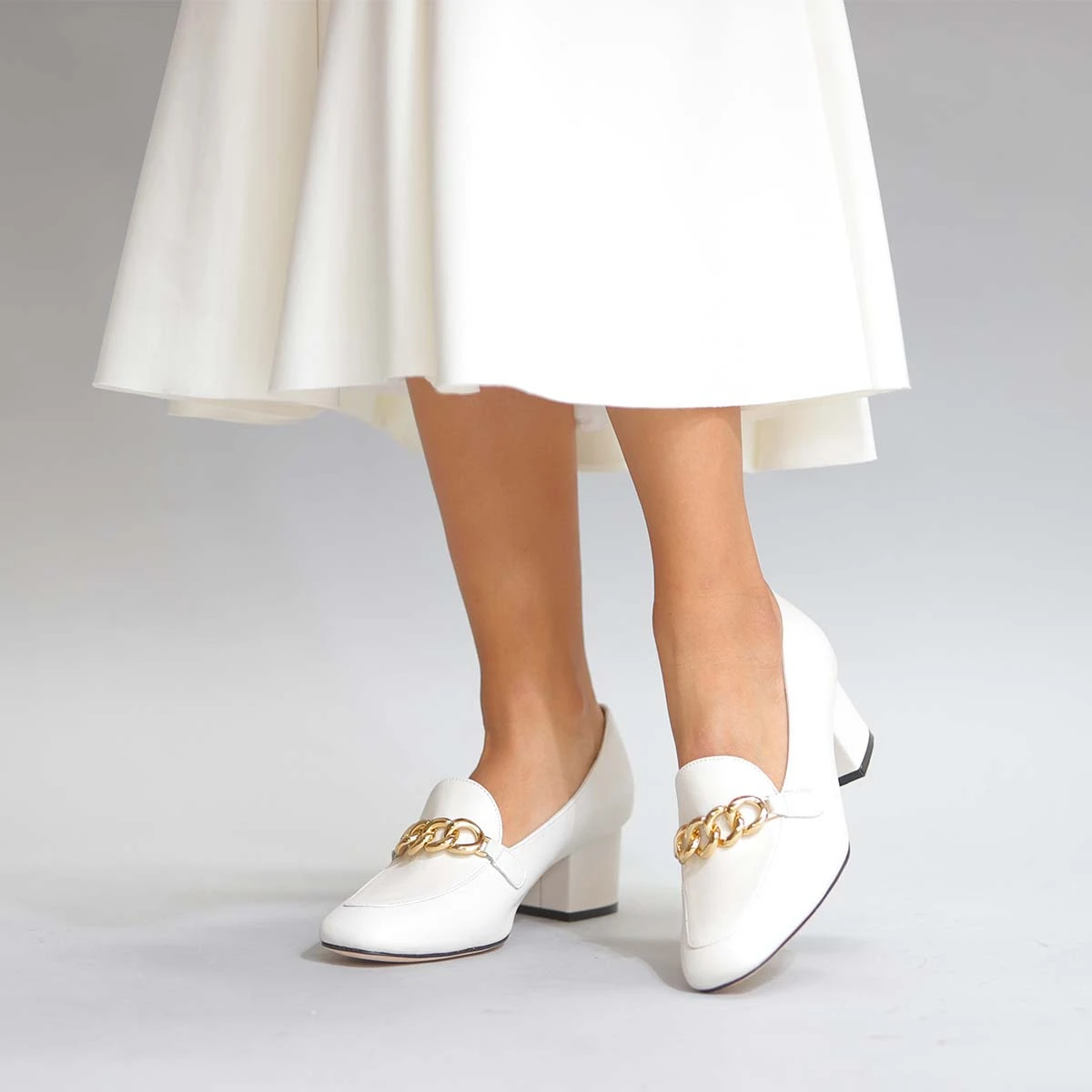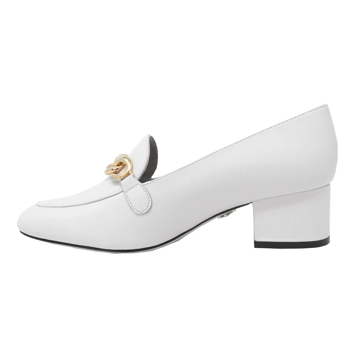 Esta temporada, introducimos nuestra nueva horma de mocasín de tacón bajo. Kali es un modelo elegante, atemporal, neutro y refinado. Hecho con las pieles más suaves de grano liso y adornado por un herraje de eslabones chunky bañados en oro. Su tacón de 4cm de bloque lo hace cómodo y su punta ligeramente cuadrada lo hace tendencia. Creado con nuestro nuevo sistema de tecnología JARC (flexibilidad en suela y planta de armado).