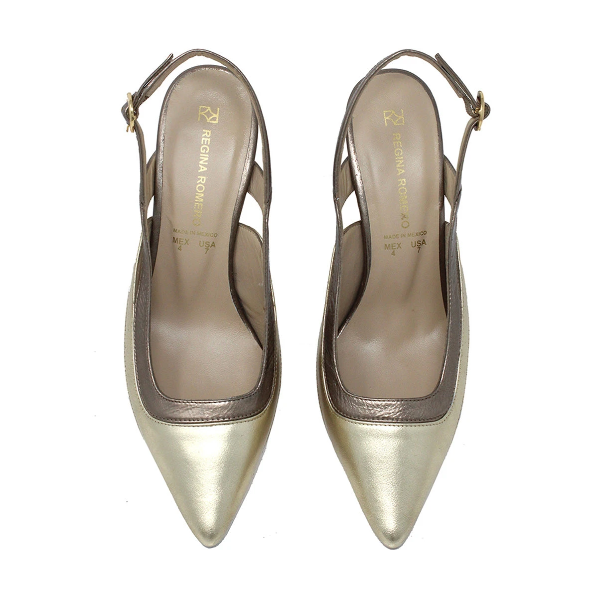 CARMINA 85 – Oro Claro Y Plata Regina Romero Zapato Sandalia Zapatilla Tacon Alto Para Dama En Piel