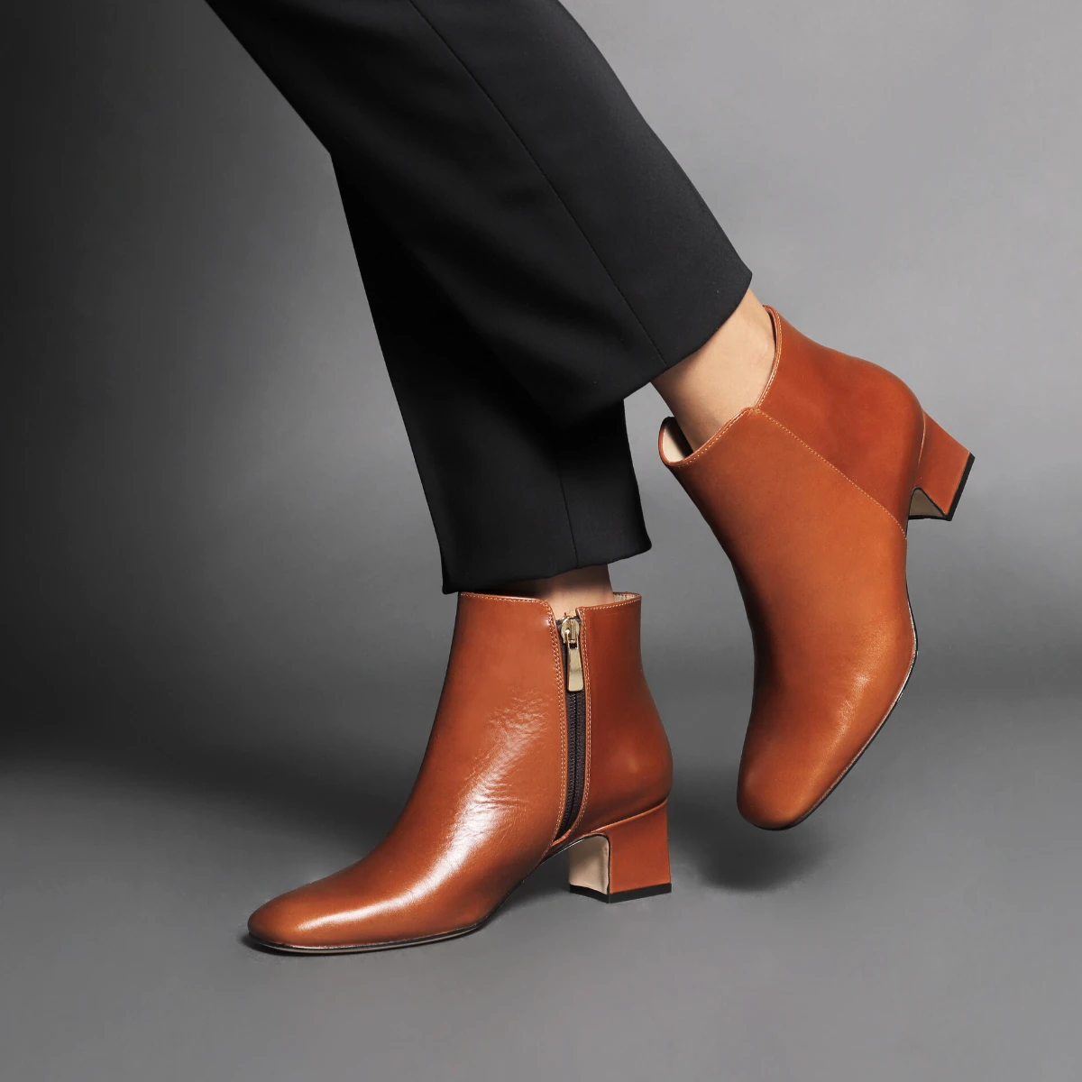 NOELLE 45 – Caramelo Regina Romero Zapato Bota Botin Tacon Bajo Para Dama En Piel