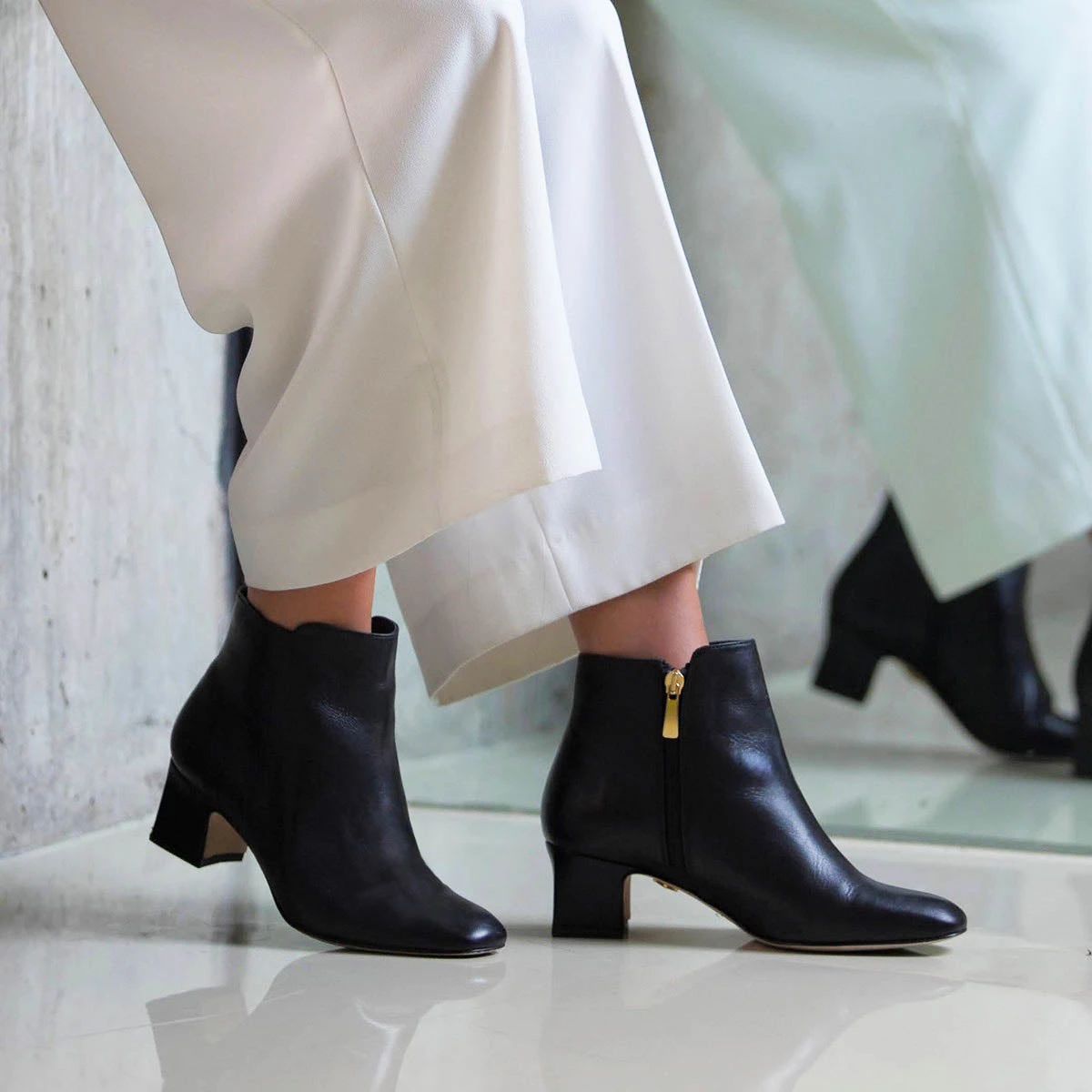 Noelle es nuestro botín de mini tacón. Comodidad, estilo, sofisticación. Perfecta para usarlo todo el día y noche y combinarlo con los mejores looks que tengas esta temporada. Creada en suave piel y cierre interno para volverla súper práctica y básica para tu closet.