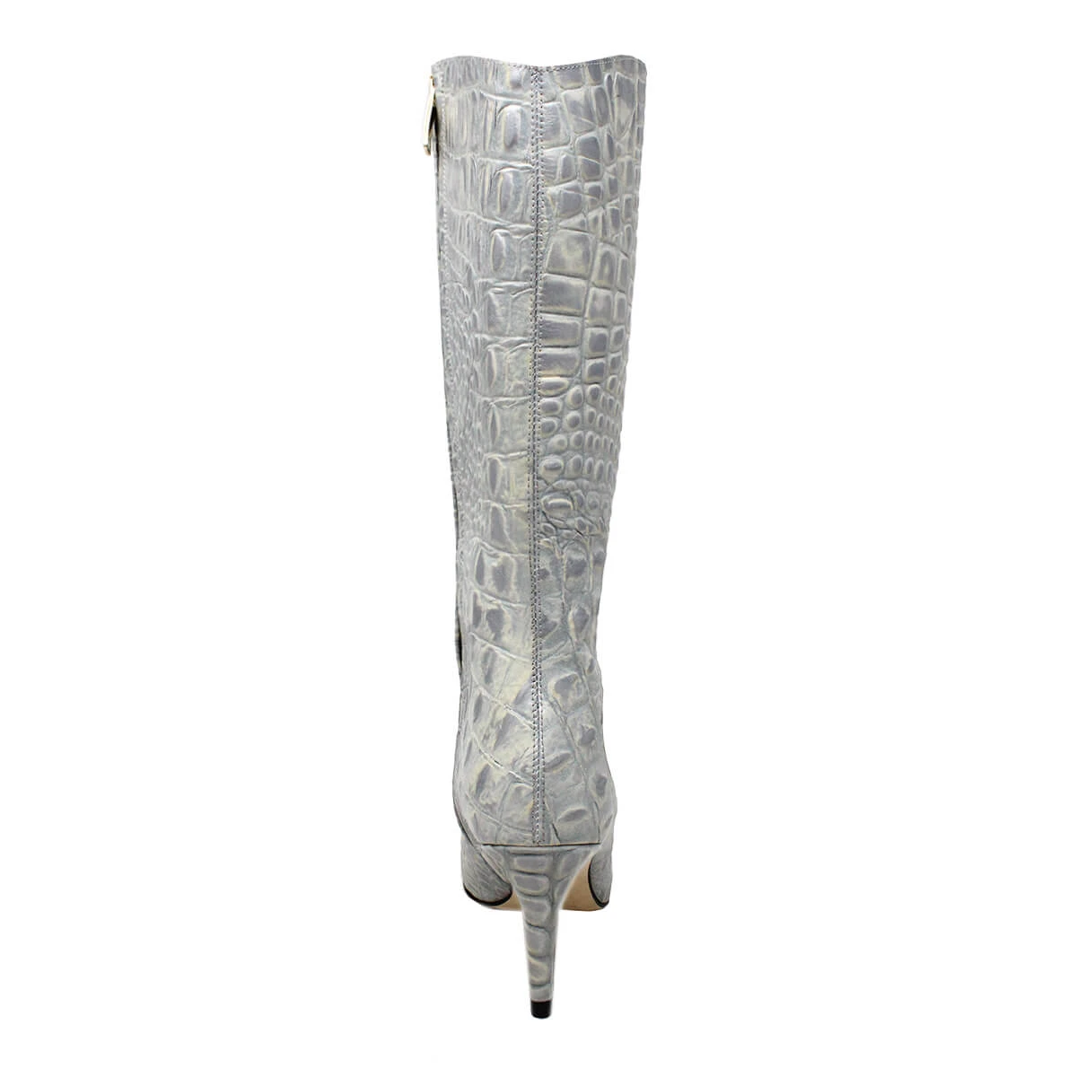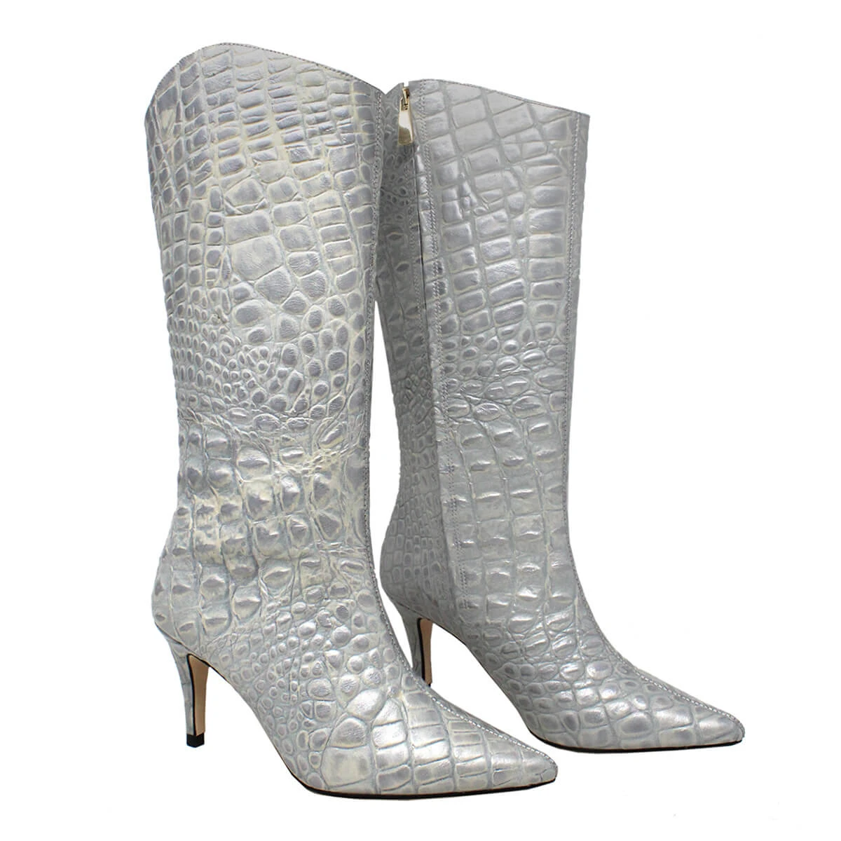 PAOLA 75 – Plata Regina Romero Zapato Bota Larga Tacon Alto Para Dama En Piel