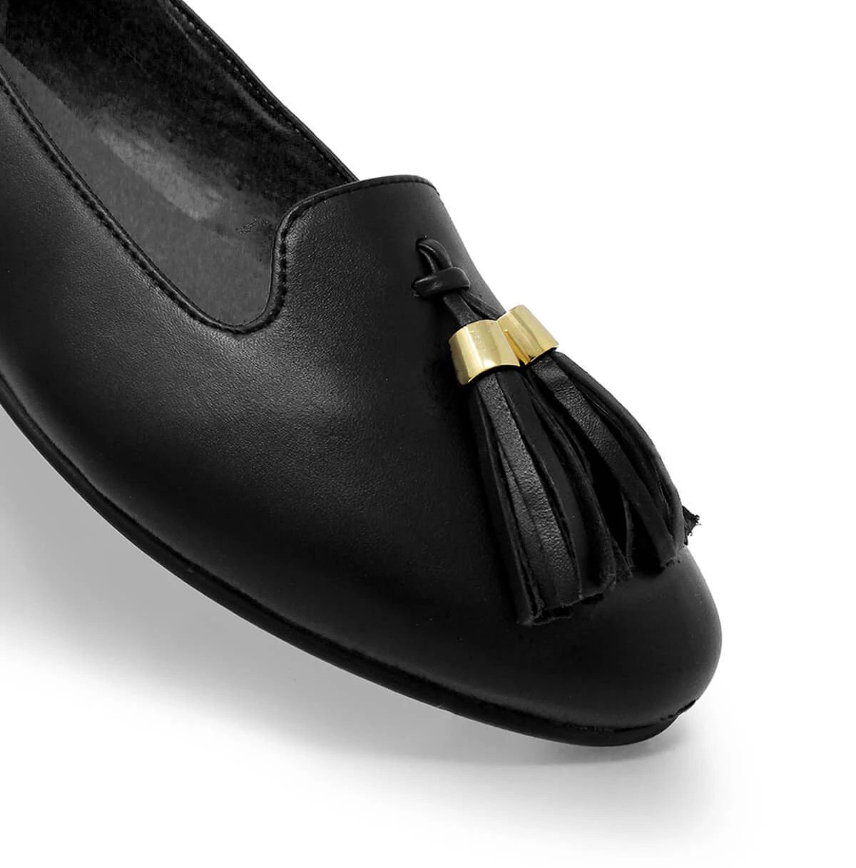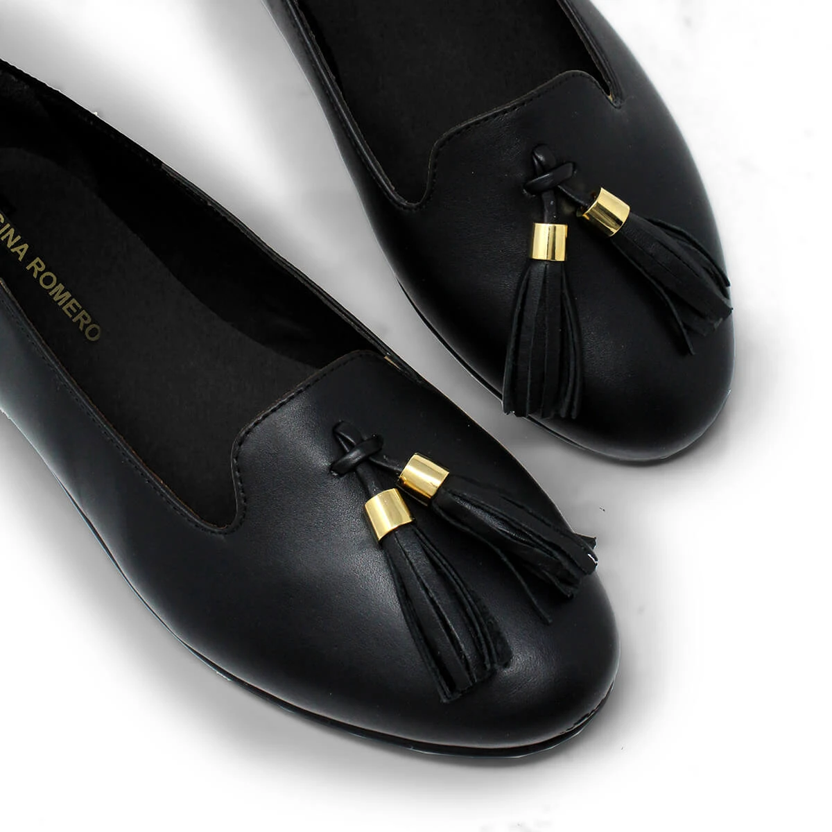 ¡Descubre el encanto único de nuestro flat Polina! Se distingue por su borla en la parte frontal, decorado con tiras de piel que añaden un toque luminoso a su clásico diseño. Es el complemento perfecto para tus ocasiones casuales, brindándote estilo y comodidad en un solo paso.