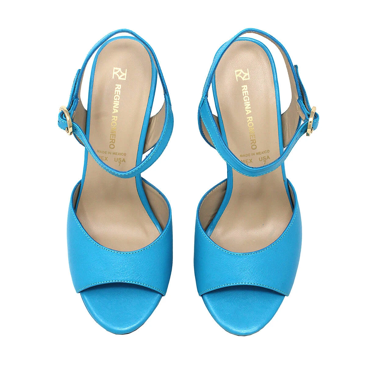 SABRINA 135 – Azul Claro Regina Romero Zapato Sandalia Plataforma Tacon Alto Para Dama En Piel