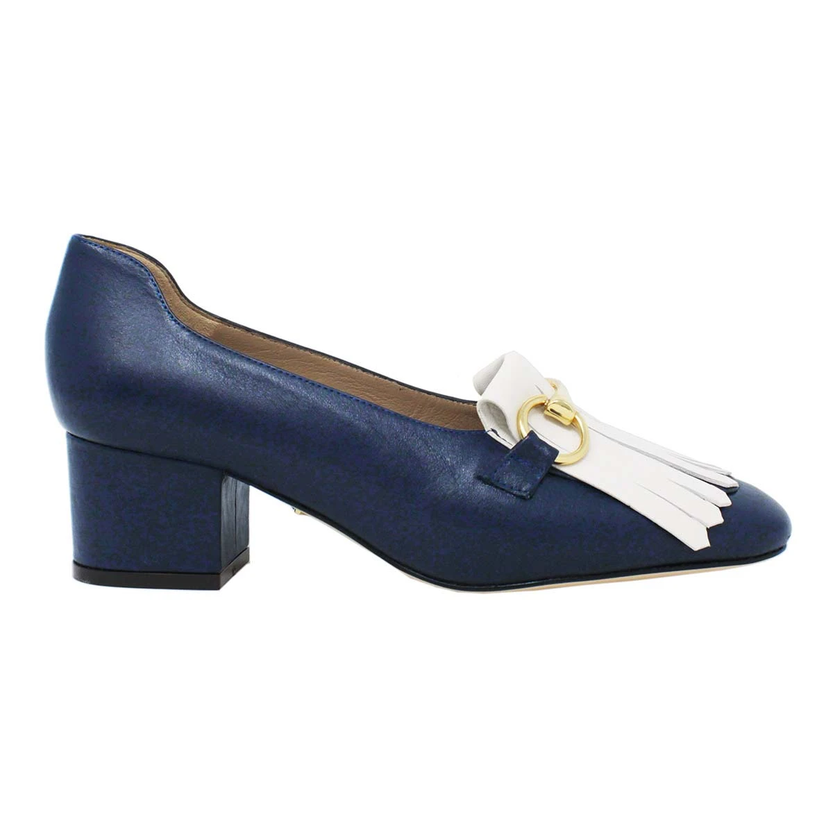 SERENA 40 – Marino Y Blanco Regina Romero Zapato Zapatilla Tacon Bajo Para Dama En Piel