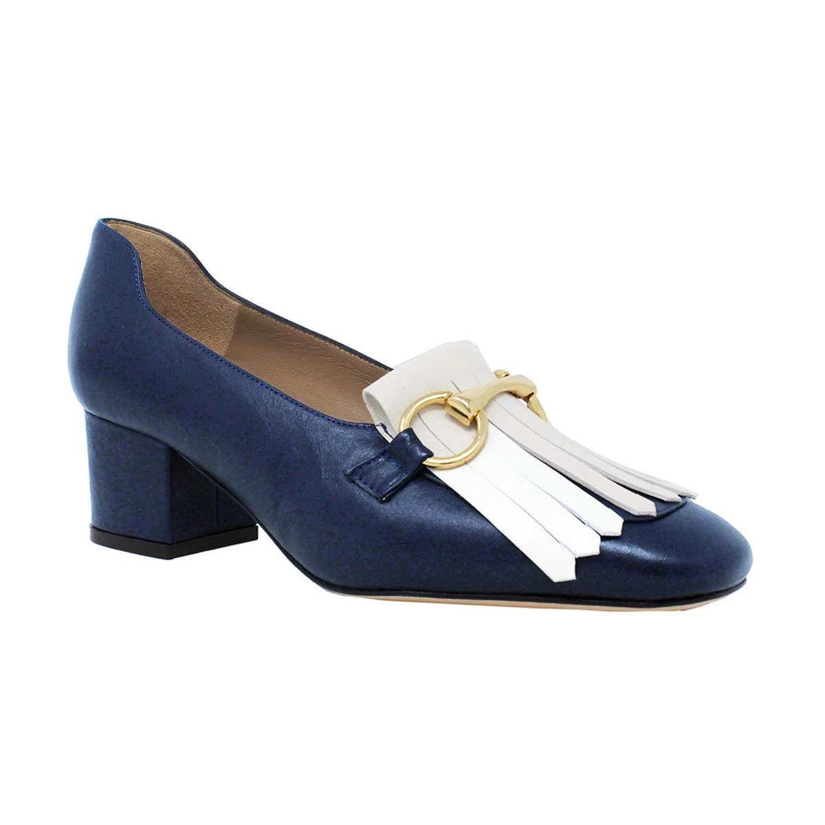 Creamos una versión elevada y sofisticada del mocasín de tacón bajo para dama. Un adorno de flecos perfectamente delineados y cortados mano, sujetados en la parte frontal por un herraje bańado en oro. Su punta ligeramente cuadrada lo hace tendencia y al mismo tiempo brinda comodidad. Tiene un tacón de bloque de 4cm de altura y esta hecha con nuestro nuevo sistema de tecnología JARC (flexibilidad en suela y planta de armado).