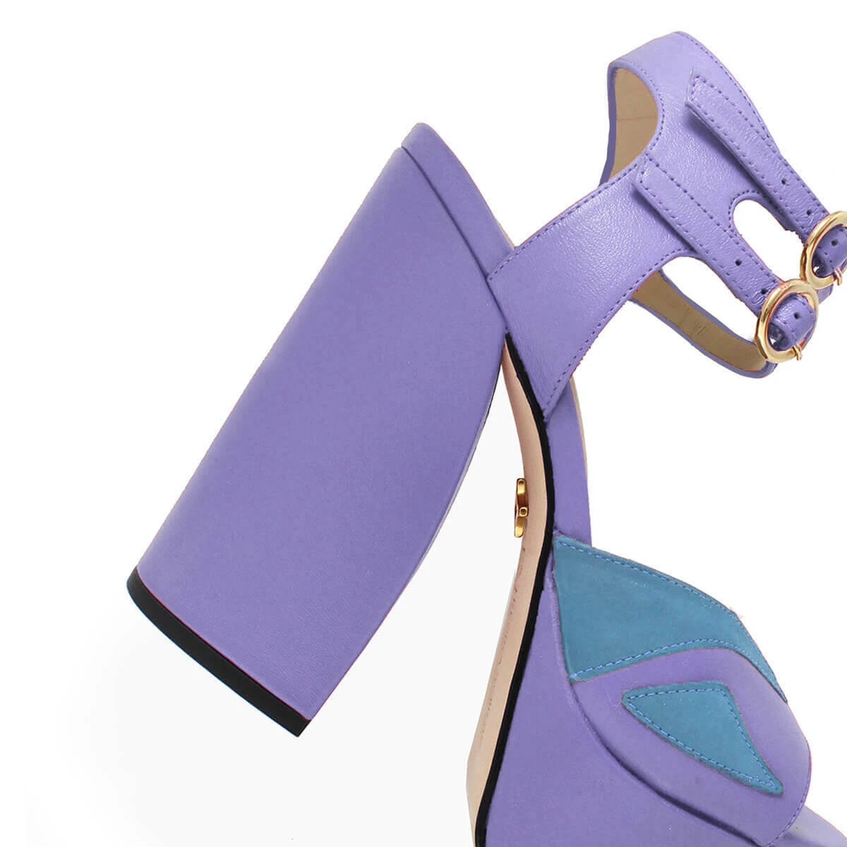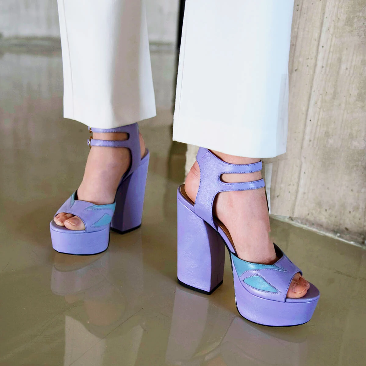 SUNNY 135 – Lila Y Azul Regina Romero Zapato Plataforma Tacon Alto Para Dama En Piel