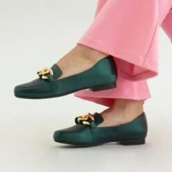 ALINE – Verde Obscuro Regina Romero Zapato Mocasin De Piso Para Dama En Piel