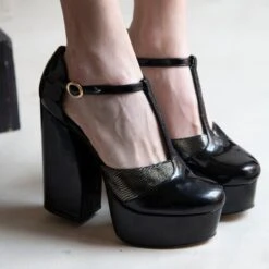 PATRICIA 135 – Charol Negro E Inox Regina Romero Zapato Plataforma Tacon Alto Para Dama En Piel